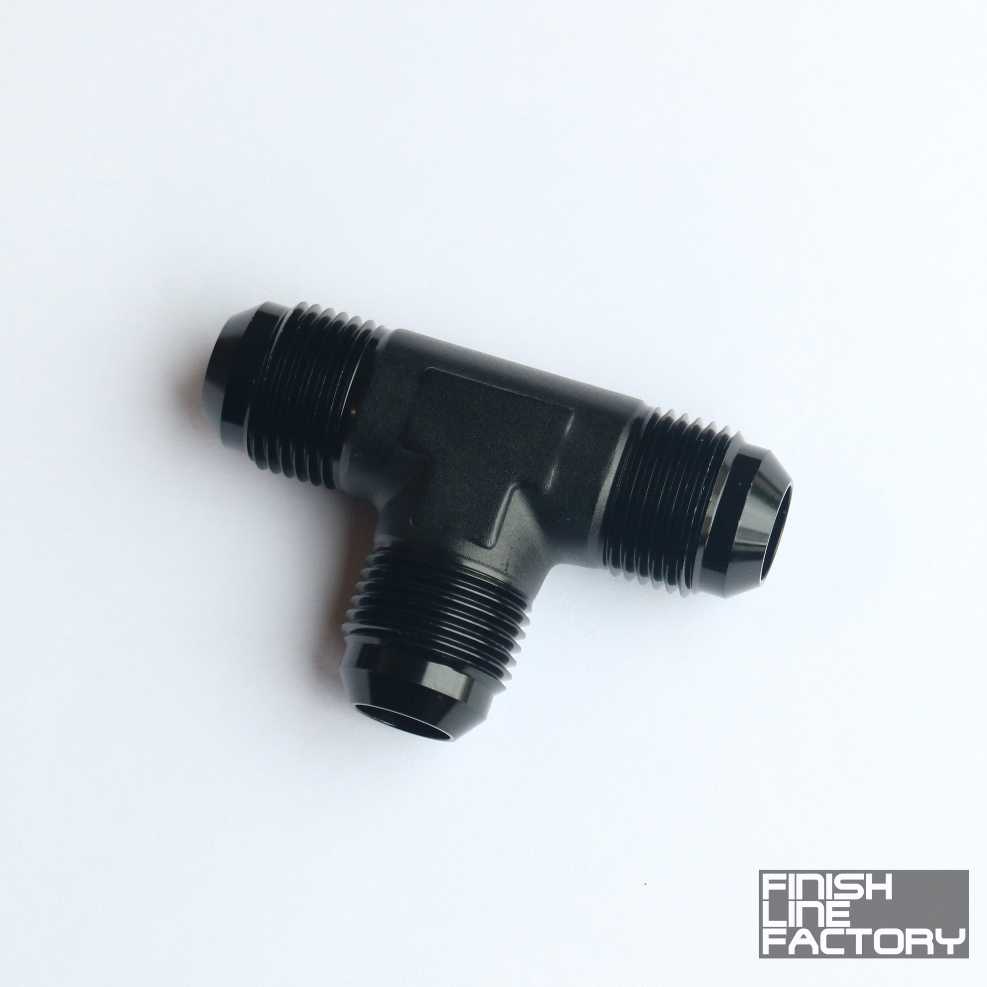 Finish Line Factory's precision made, high quality AN Male Tee Adapters are ideal for the delivery of fuel, oil, water, air, or any fluid of your choice. CNC Machined using lightweight 6061 aluminum and anodized black for a slick finish. Our fittings provide strength in extreme conditions and are easy and fast to assemble. We only use high-quality seals and o-rings to provide a leak-free seal, especially when used with volatile liquids like racing fuels and some oils/coolants. Additionally, each of our fittings is given either a matte or polished finish to provide your vehicle's fluid delivery system a quality look, feel, and performance.